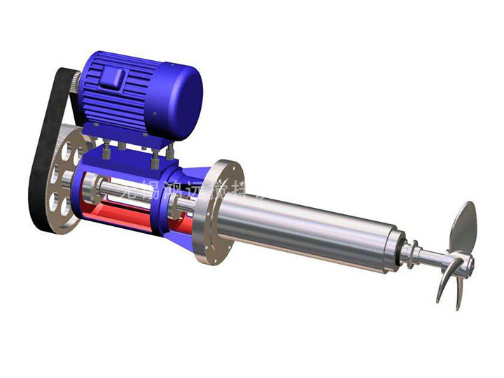 顶入式搅拌机可采用高强度齿轮减速机、摆线针轮齿啮合、行星传动原理设计的减速机等,具有传动速比大、结构紧凑、运行平稳、低噪音、外型美观、传动效率高造价低、使用寿命长等特点,特别适宜于中小功率、中小体积的低速搅拌作业。